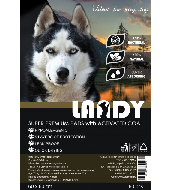 LANDY Пелюшки для домашніх тварин з активованим вугіллям 60х60 (60 шт)