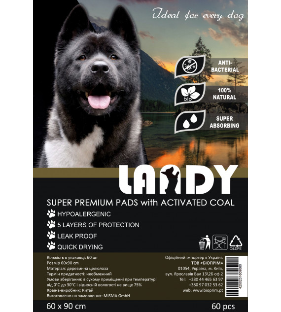 LANDY Пелюшки для домашніх тварин з активованим вугіллям 60х90 (60 шт)
