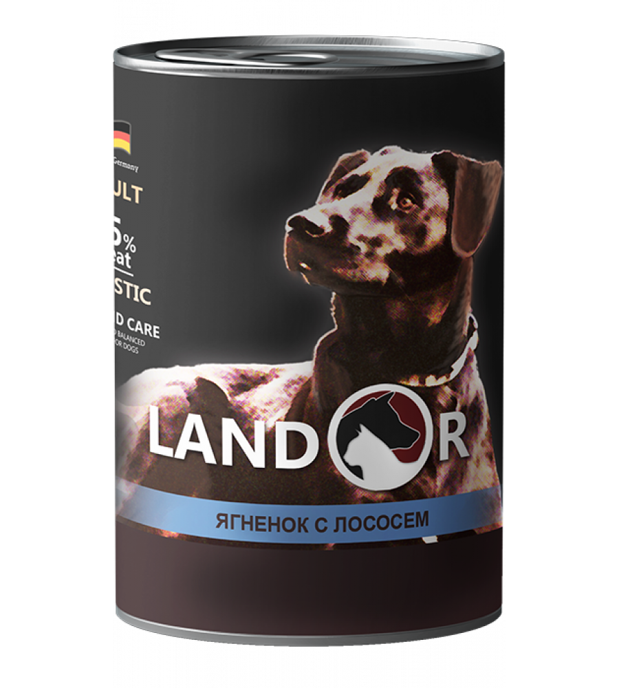 Повноцінний збалансований вологий корм для дорослих собак з ягням та лососем. Виготовлений з свіжого м'яса та відбірних компонентів. Не містить сої, барвників, штучних ароматизаторів та консервантів.